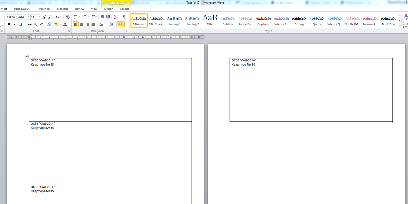 Для друку необхідно відкрити порожній Word документ (обов'язково у форматі DOCX) і додіти таблицю з одним стовпчиком і одним рядком і підібрати таку висоту комірки, щоб візуально відповідала висоті квитанції. Також обов'язково проставити точні розміри полі самої сторінки.