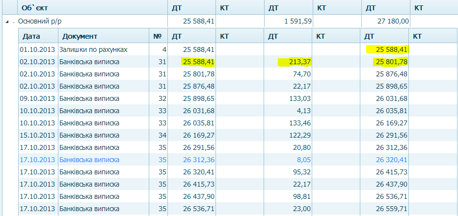 На Ваше прохання змінено логіку програми: в розгорнутому виді кінцеве сальдо кожного документу/проводки впливає на початкове сальдо наступного документа/проводки.