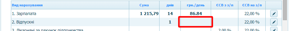 Відсутня колонка для нарахування відпускних та лікарняних.