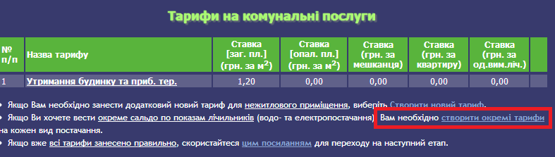 Підскажіть, будь ласка, як можна додати тариф, бо коли вношу дані, то такої фунції знайти не можу, хоча коли переглядаю попереднє повідомлення на тему "Нежитлові приміщення" - така функція є.